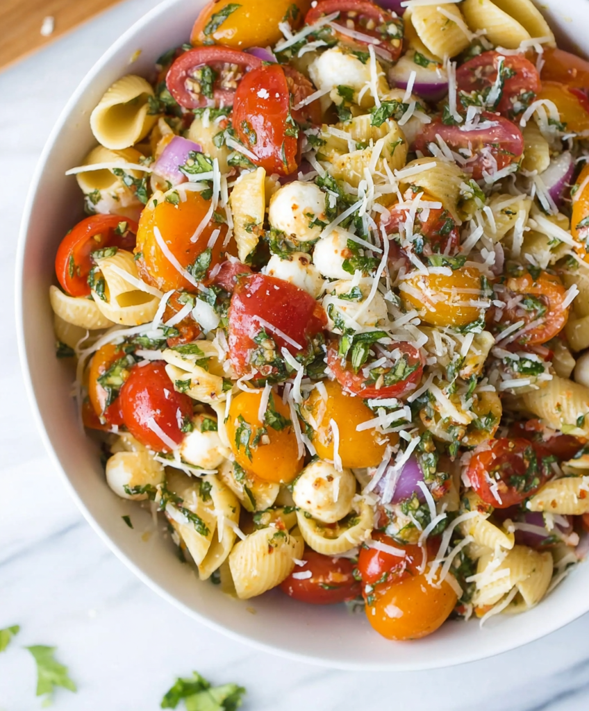 Bruschetta Pasta Salad With Mini Mozzarella Balls