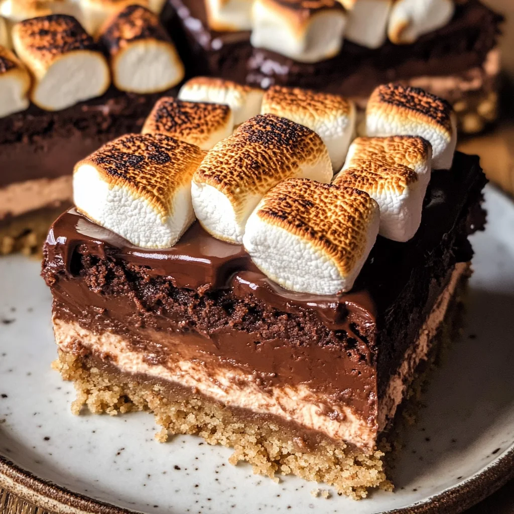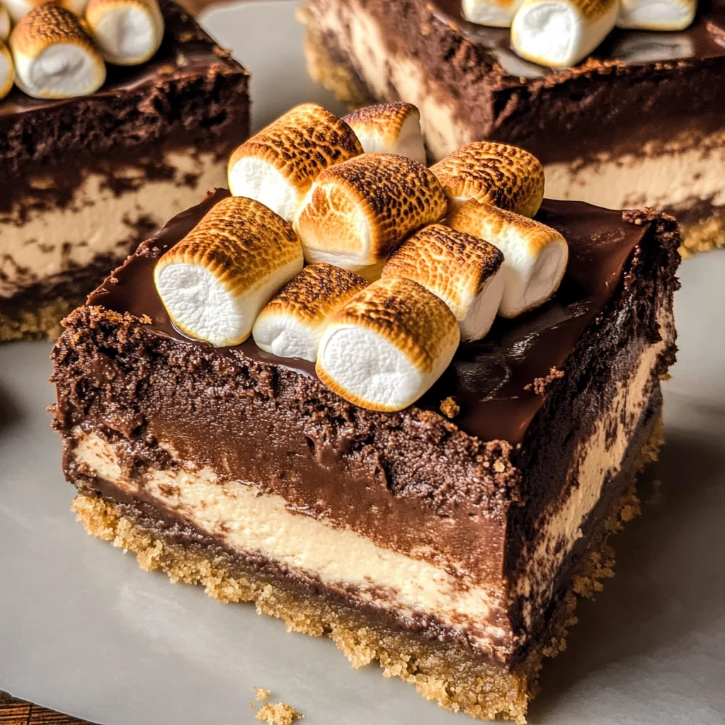 Indulge in the rich, creamy delight of S’mores Cheesecake Bars, a perfect blend of classic flavors that transform a beloved treat into an extraordinary dessert. Featuring a buttery graham cracker crust topped with velvety chocolate cheesecake, these bars are finished with silky chocolate ganache and toasted vegan marshmallows for that authentic s’mores experience. Ideal for gatherings or cozy nights in, this recipe is simple to follow and sure to impress anyone with its decadent taste and satisfying texture. Enjoy these bars as a delightful addition to any occasion – they are easy to share and even easier to love.